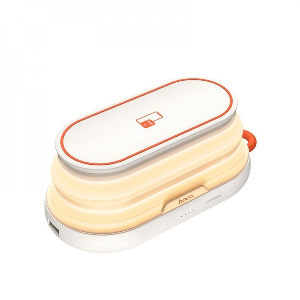 باوربانك طراز S9 لاسلكي بسعة 5000 مللي أمبير في الساعة مع أضواء ليلية وحامل للموبايل من هوكو - ابيض