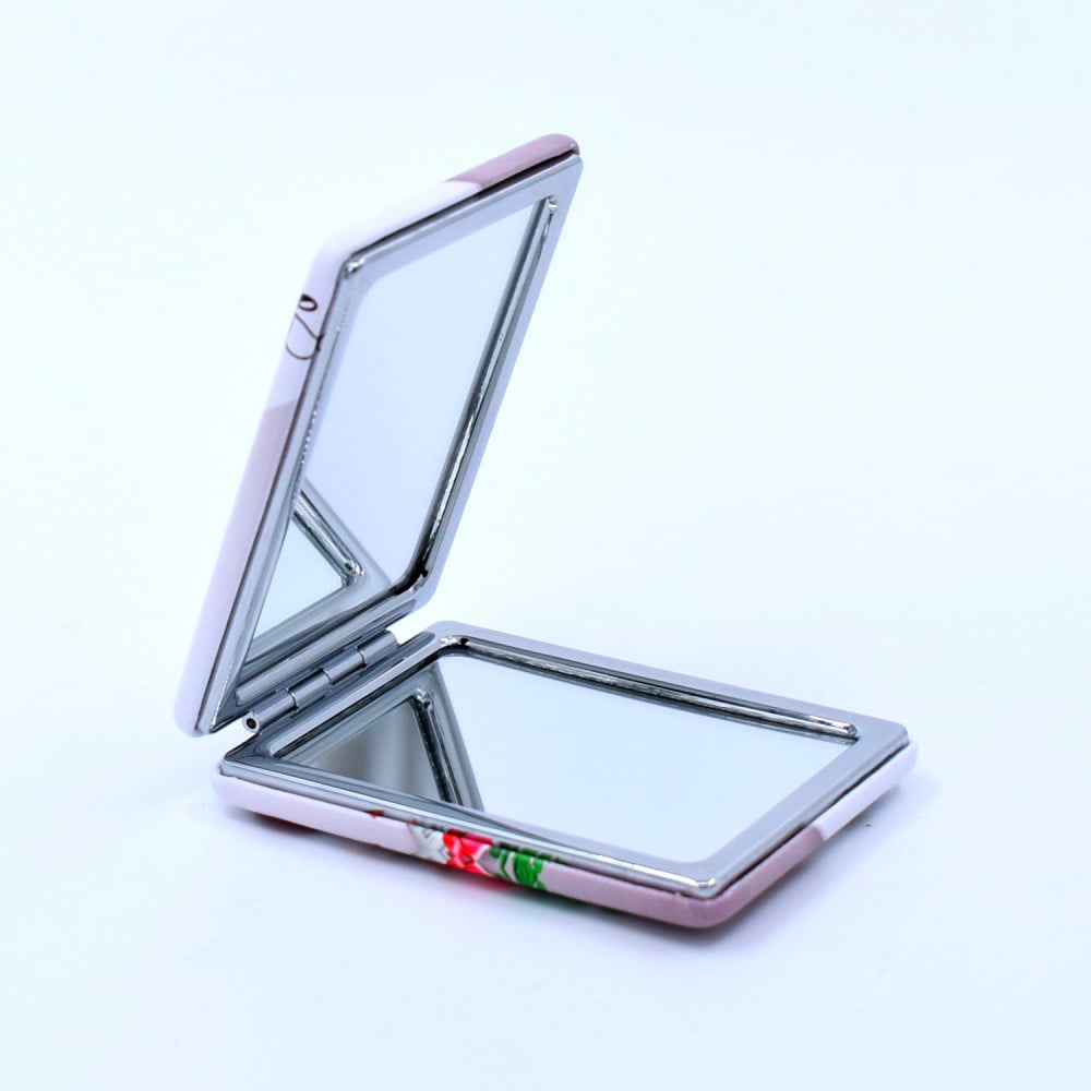 مرأة جميلة لزينة المرأة بنقش ماركة جميل وبألوان مرحة. هذه المرأة الجميلة سهلة الحمل في الحقيبة النسائية وخفيفة الوزن، وتحتوي على مرأة عادية، ومرأة أخرى مكبرة، ويمكن تخزينها بسهولة لقابليتها للطي.