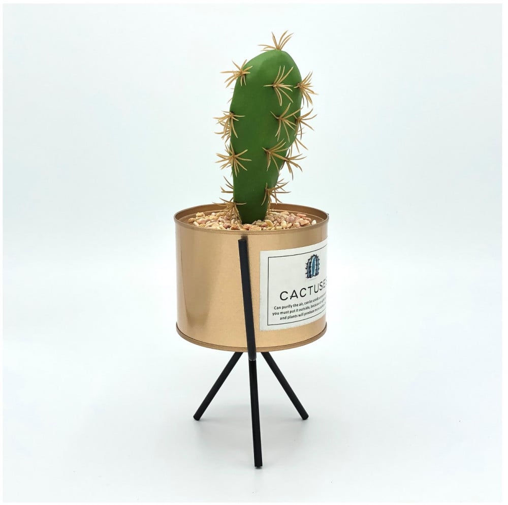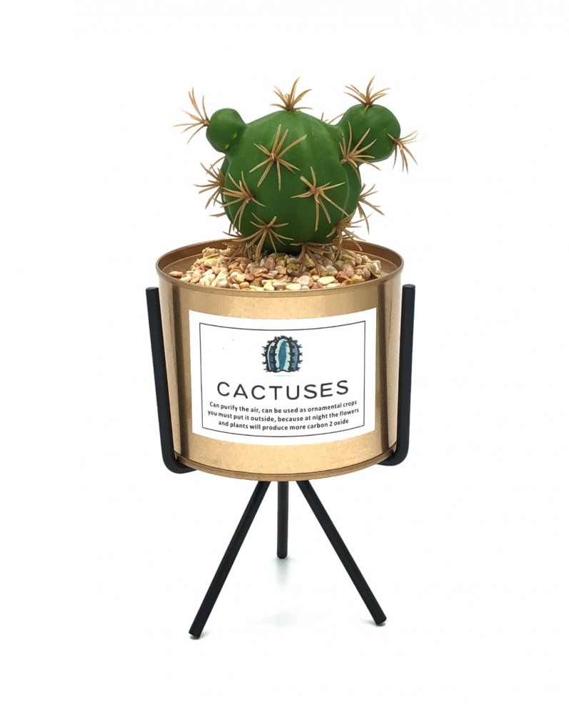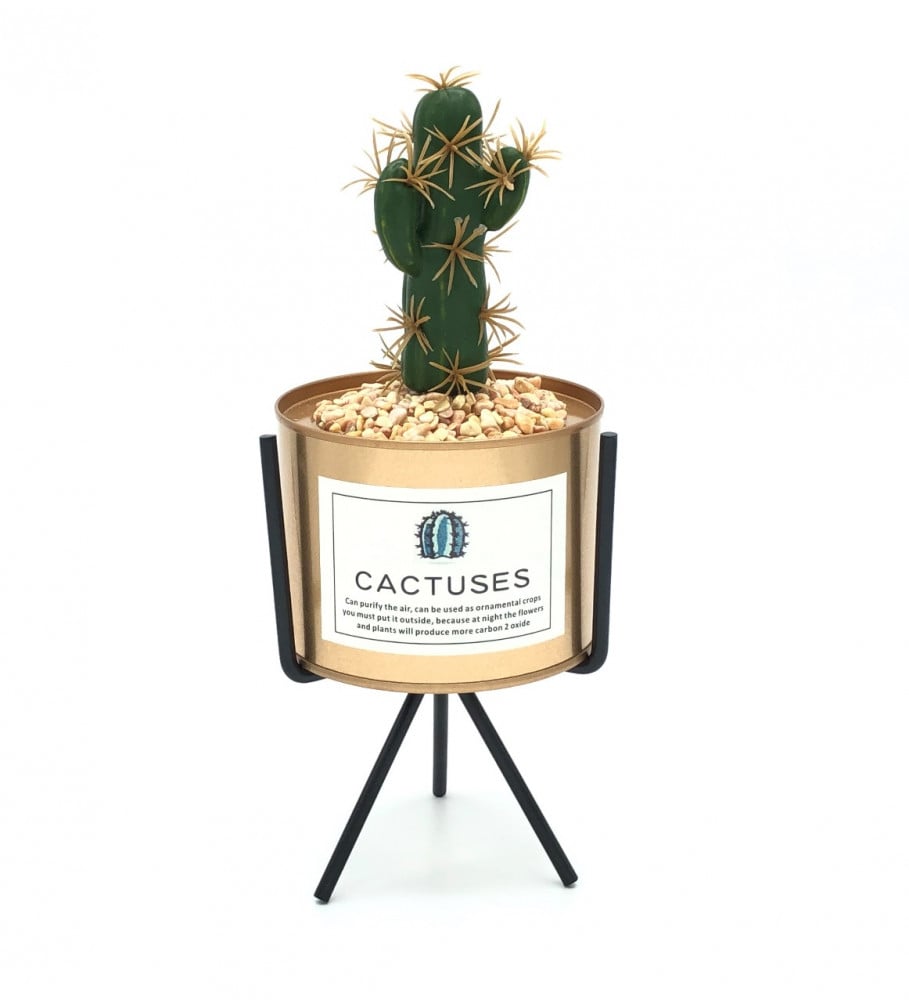 اللون والشكل: متوفر بلون معدني نحاسي مع خيارات متعددة من أنواع شجر الصبار الأخضر الجميل.