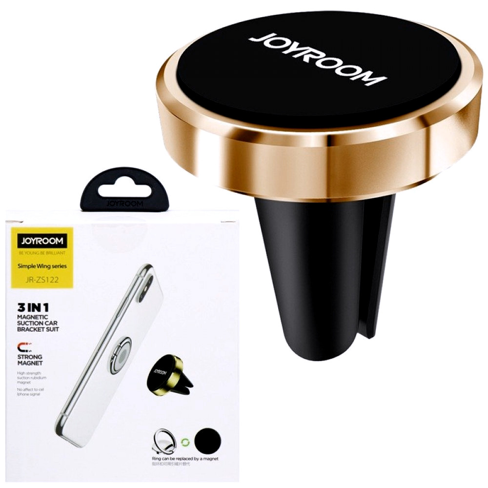 قاعدة جوال مغناطيسية ومسكة صغيرة (ريشة) للسيارة (ريشة لفتحات التكييف) من جويروم JOYROOM موديل JR-ZS122. تتميز بوجود مسكة جميلة وقاعدة بقوة مغناطيسية عالية الجودة، حيث تحتوي على عدد 6 قطع من المغناطيس القوي وعالي الجودة ليساعد على ثبات الجوال حتى عند المرور بالمناطق الوعرة وعند إستخدام المكابح فجأة، وتمتلك قاعدة اضافية تثبت في ظهر الهاتف تساعد على الاستخدام اليومي خارج السيارة وأيضا يمكن إستخدامة مع القاعدة (الريشة) في السيارة.