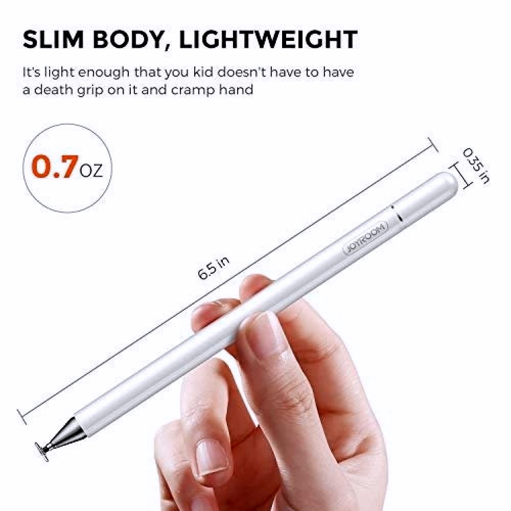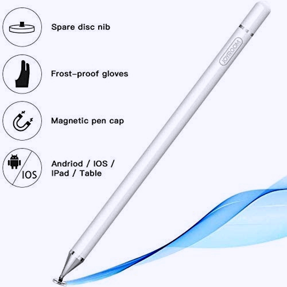 القلم مقدم من جويروم JOYROOM داعم لجميع الأجهزة وسلس في الأستخدام ويساعد الرسامين والطلاب على الرسم والتعلم على الأجهزة بسلاسة شديدة، ومن دون شحن، يأتي مع المنتدج رأسين اضافيين لزيادة مدة إستهلاك القلم، ويمكن حفظ الرؤس الإضافية في أعلى القلم، كما ان القلم يمتلك خاصية المغناطيس لتثبيتة في ظهر التابلت والأيباد، ضمان سنتين.